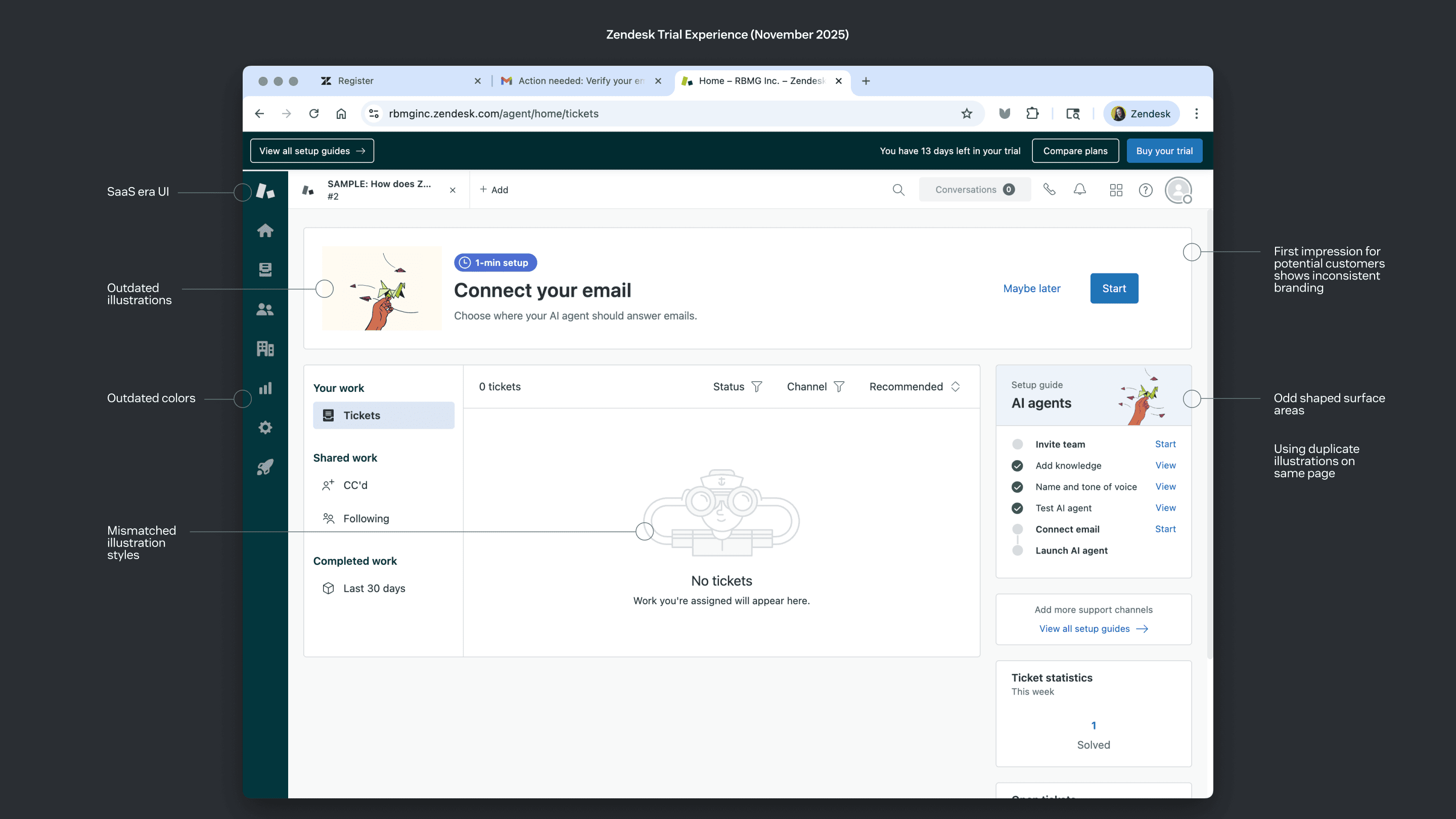 Zendesk had been experiencing fragmented brand and product design due to leadership changes, a 2025 brand reset, and siloed teams. As a relatively new employee (3mos) I saw an opportunity during the annual company hackathon to try and reunite design teams to realign brand and product experiences.